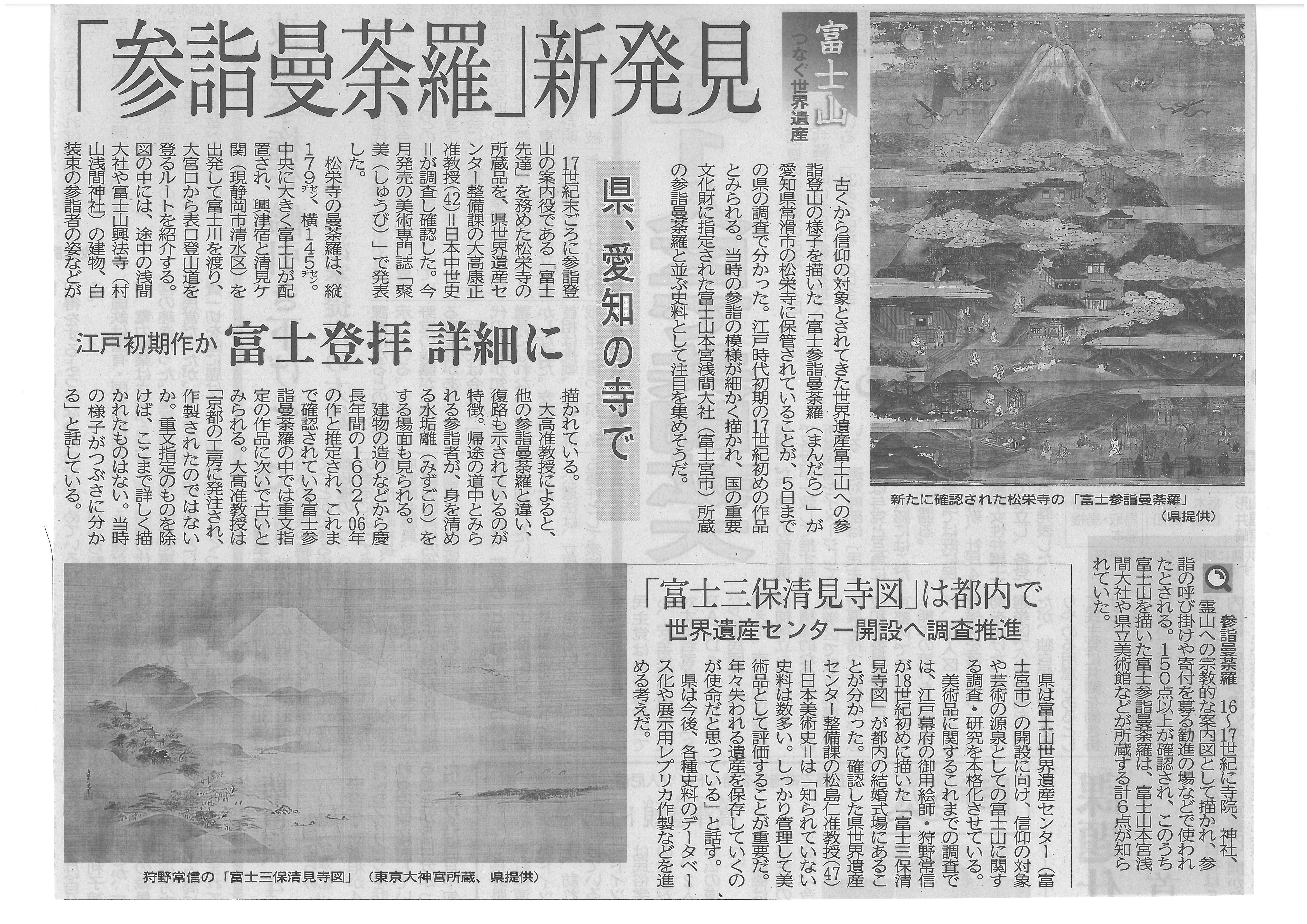 「富士参詣曼荼羅」新発見 江戸初期作か 静岡県調査2016年1月6日 静岡新聞 平成28年1月6日 朝刊 申と富士信仰、つながり紹介 「富士参詣曼荼羅」新発見 江戸初期作か 静岡県調査 (読書 著者訪問) 「日本人にとって美しさとは何か」