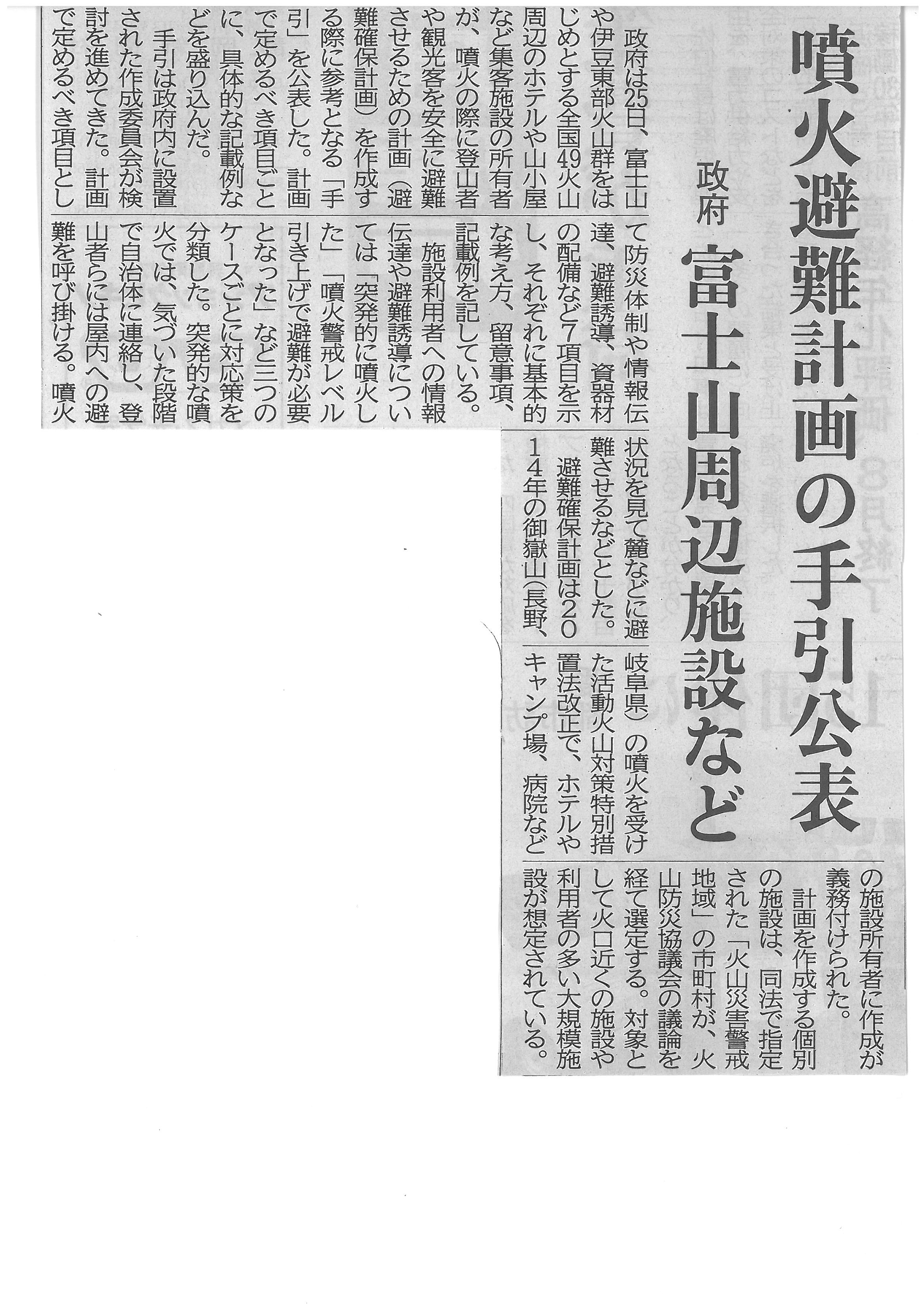 集客施設の噴火避難計画 政府が手引公表 富士山周辺など2016年3月28日 静岡新聞 平成28年3月25日 夕刊 修造さんが音声ガイド 6月開館、山梨県富士山世界遺産センター 集客施設の噴火避難計画 政府が手引公表 富士山周辺など 富士山西麓観光でガイド本 富士河口湖町と富士宮市 作成へ