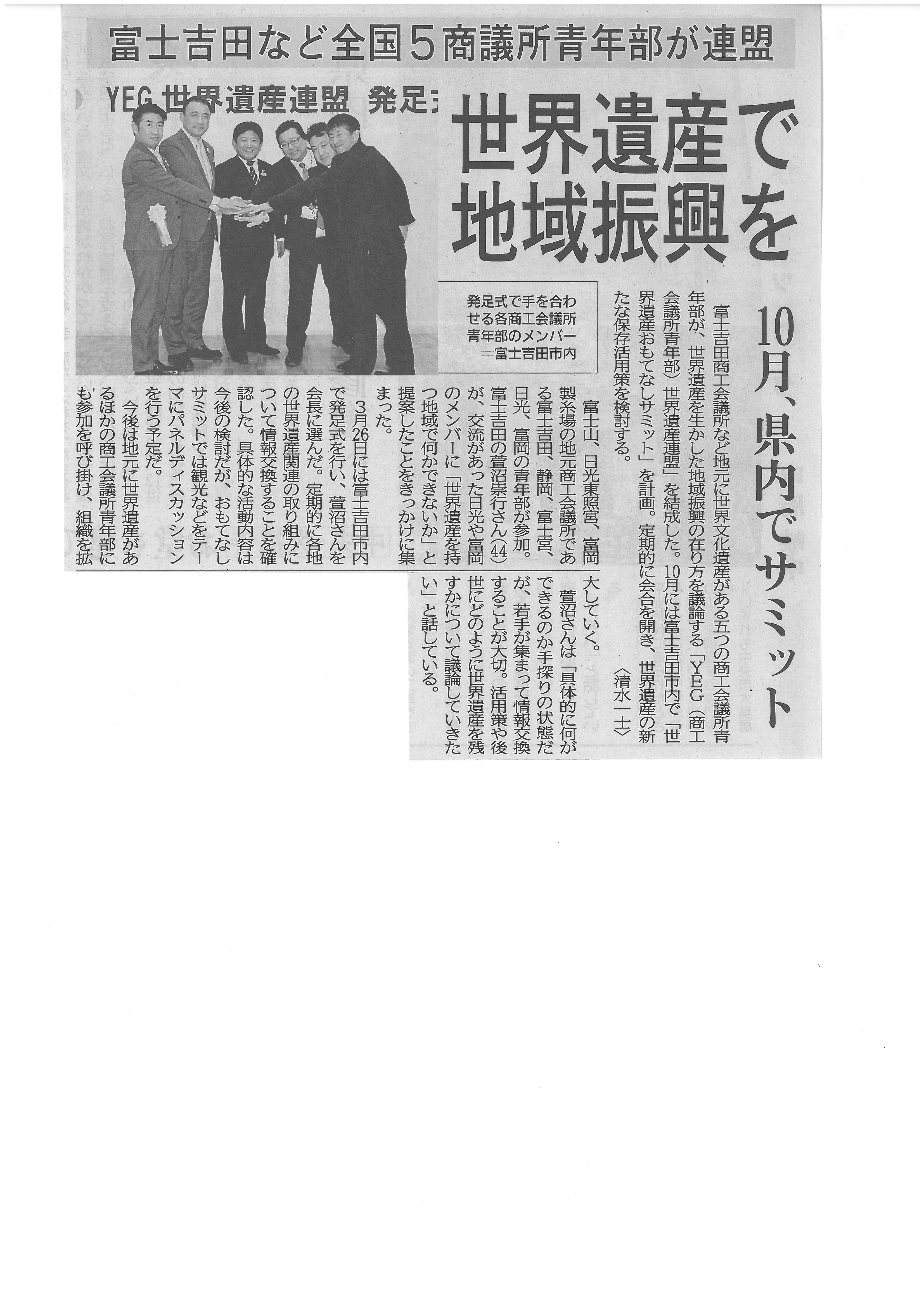 世界遺産で地域振興を 10月、山梨県内でサミット2016年4月6日 山梨日日新聞 平成28年4月6日 山梨県、訪日客誘致へアプリ開発 世界遺産で地域振興を 10月、山梨県内でサミット 富士山噴火 北麓の避難計画 大枠固まる
