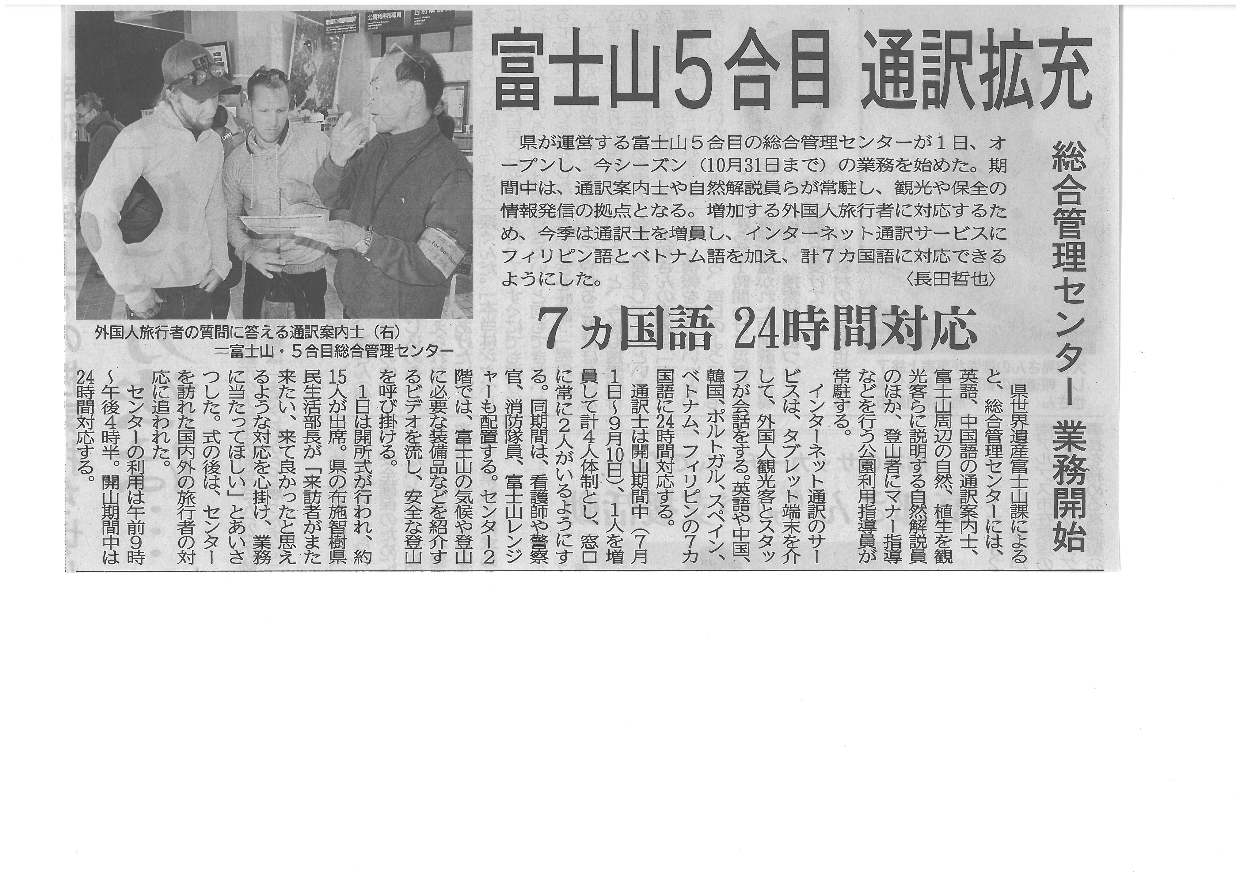 山梨県運営の富士山5合目・総合管理センター 通訳拡充2016年5月9日 山梨日日新聞 平成28年5月2日 富士山の静岡県側3県道開通 5合目以上は閉鎖継続 山梨県運営の富士山5合目・総合管理センター 通訳拡充 浮世絵で富士山学ぶ 山梨県の全小学校に教材配布