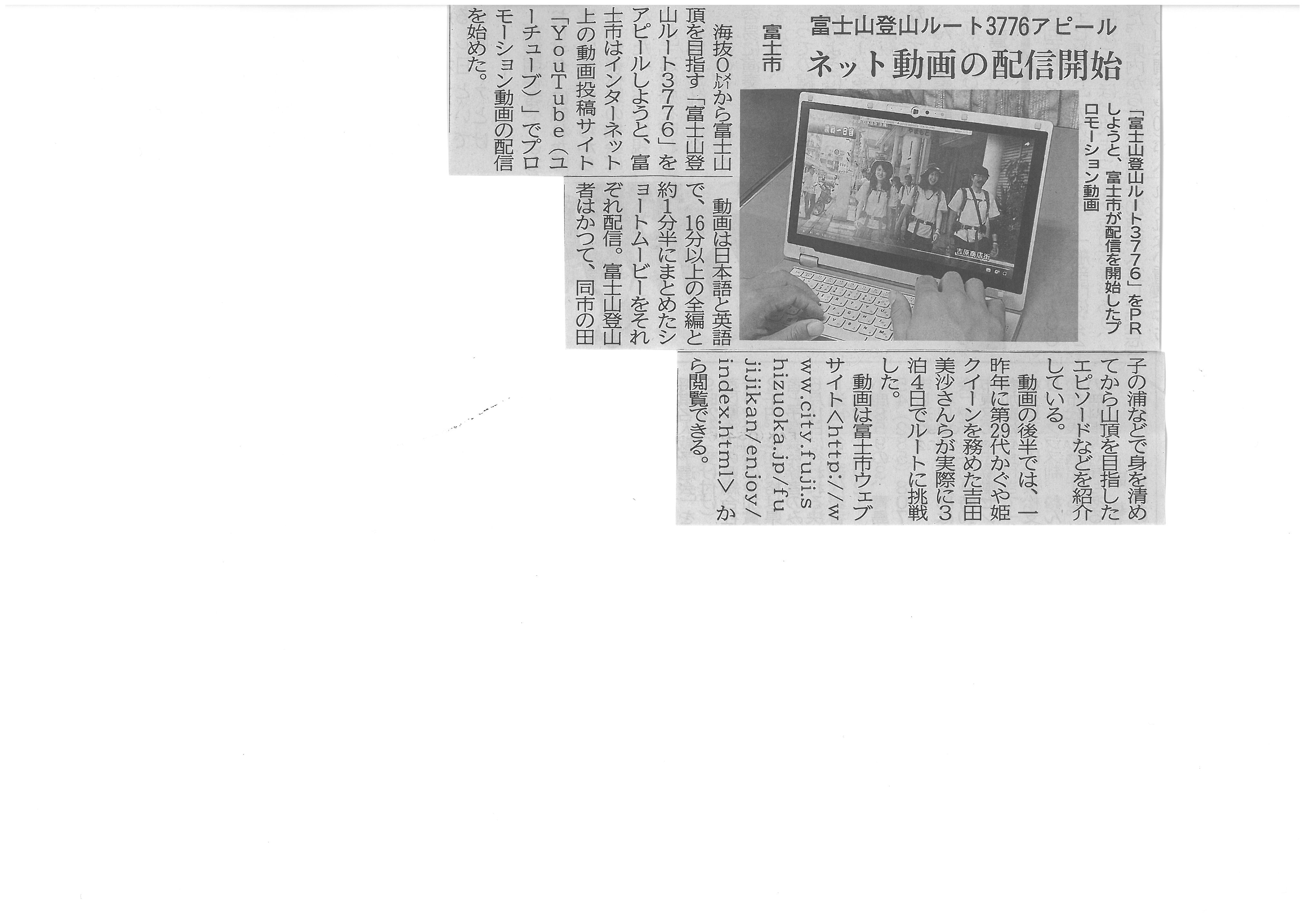 登山ルート3776、動画配信でPR 富士市2016年5月11日 静岡新聞 平成28年5月11日 朝刊 地質学会が「県の石」認定 141種の岩、鉱物、化石 登山ルート3776、動画配信でPR 富士市 富士山学ぶ教材配布 山梨県、小立小で出前授業