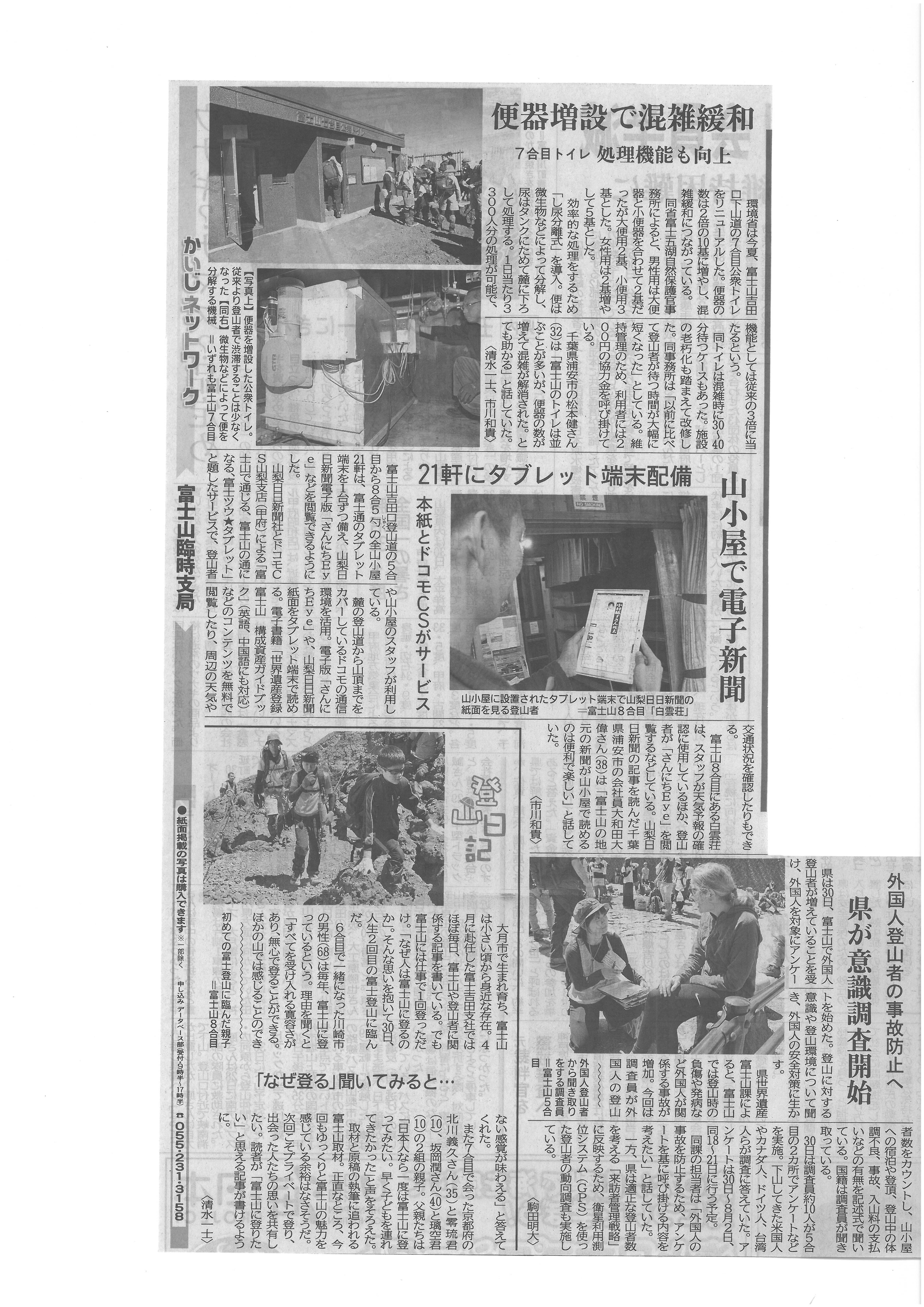 山梨日日新聞 富士山臨時支局 7月31日 ②