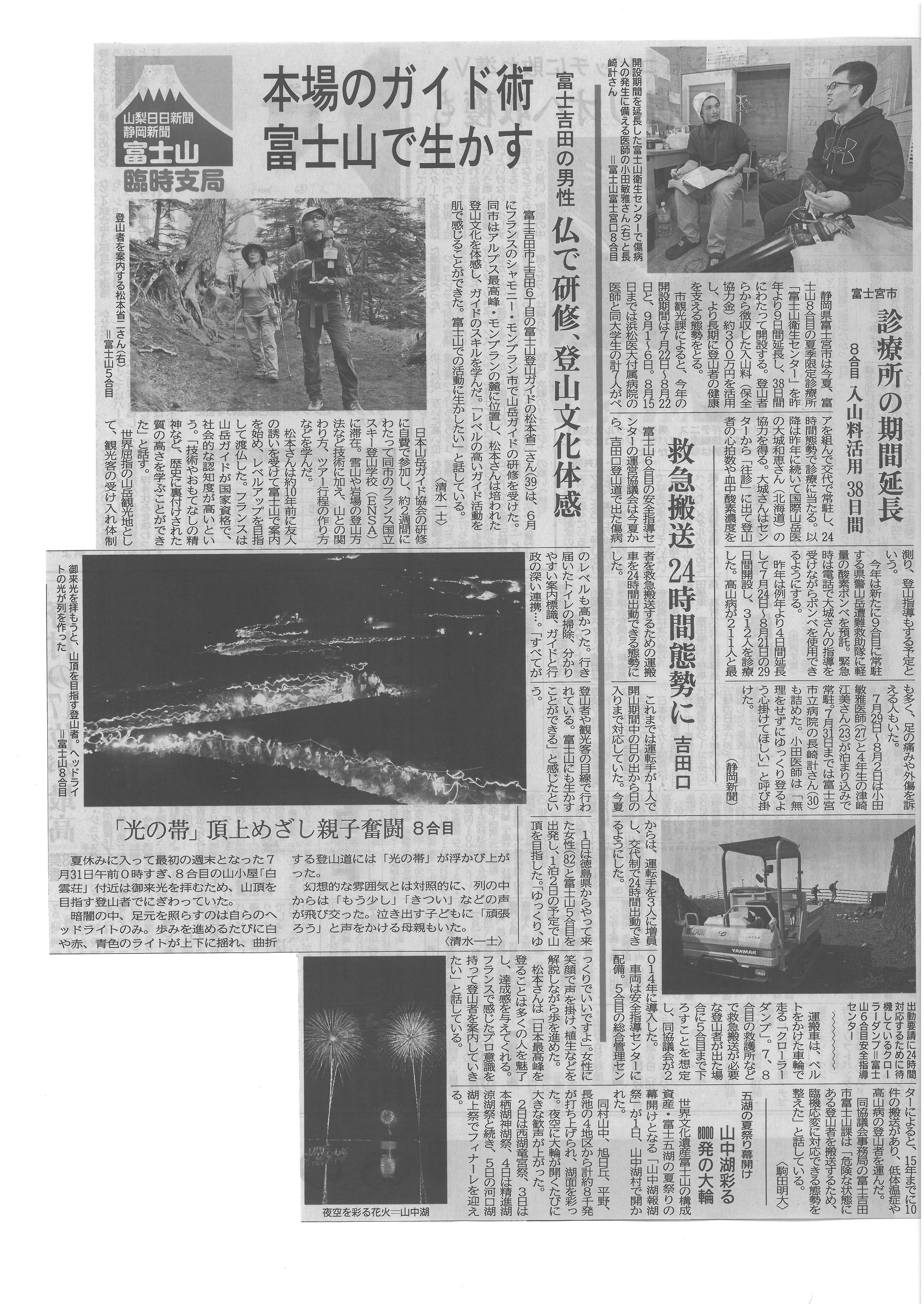 山梨日日新聞 富士山臨時支局 8月2日 ①