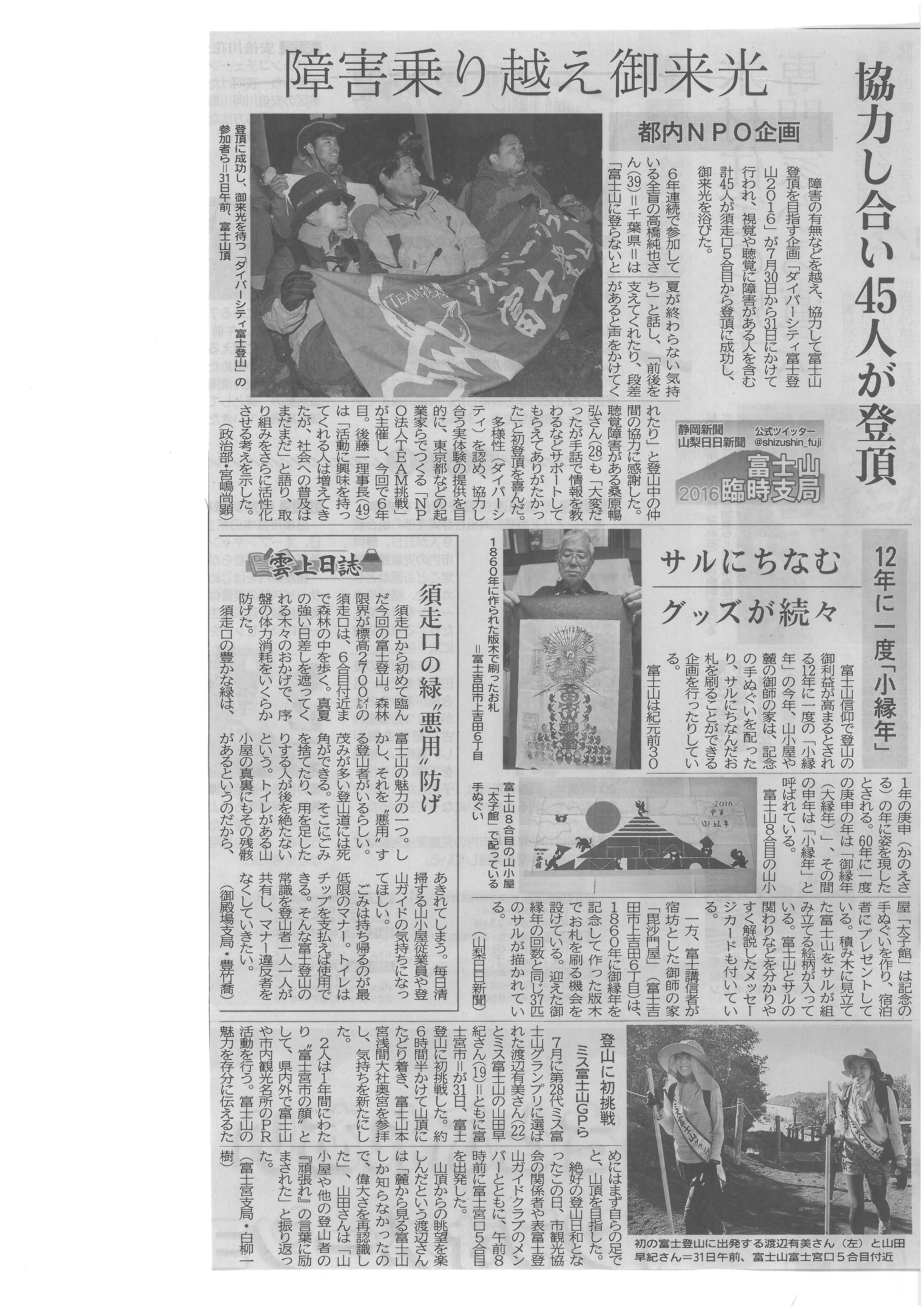 静岡新聞 富士山臨時支局 8月1日 ②
