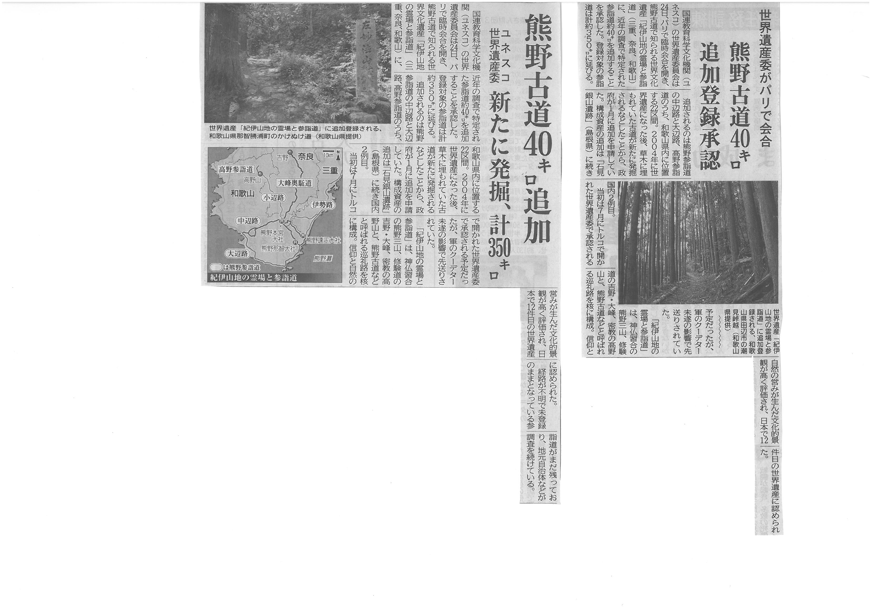 世界遺産委員会 熊野古道40㌔追加2016年10月27日 静岡新聞 山梨日日新聞 平成28年10月25日 朝刊 富士山信仰 親子学ぶ 世界遺産委員会 熊野古道40㌔追加 古代史の窓 「古屋家家譜」と富士山 上
