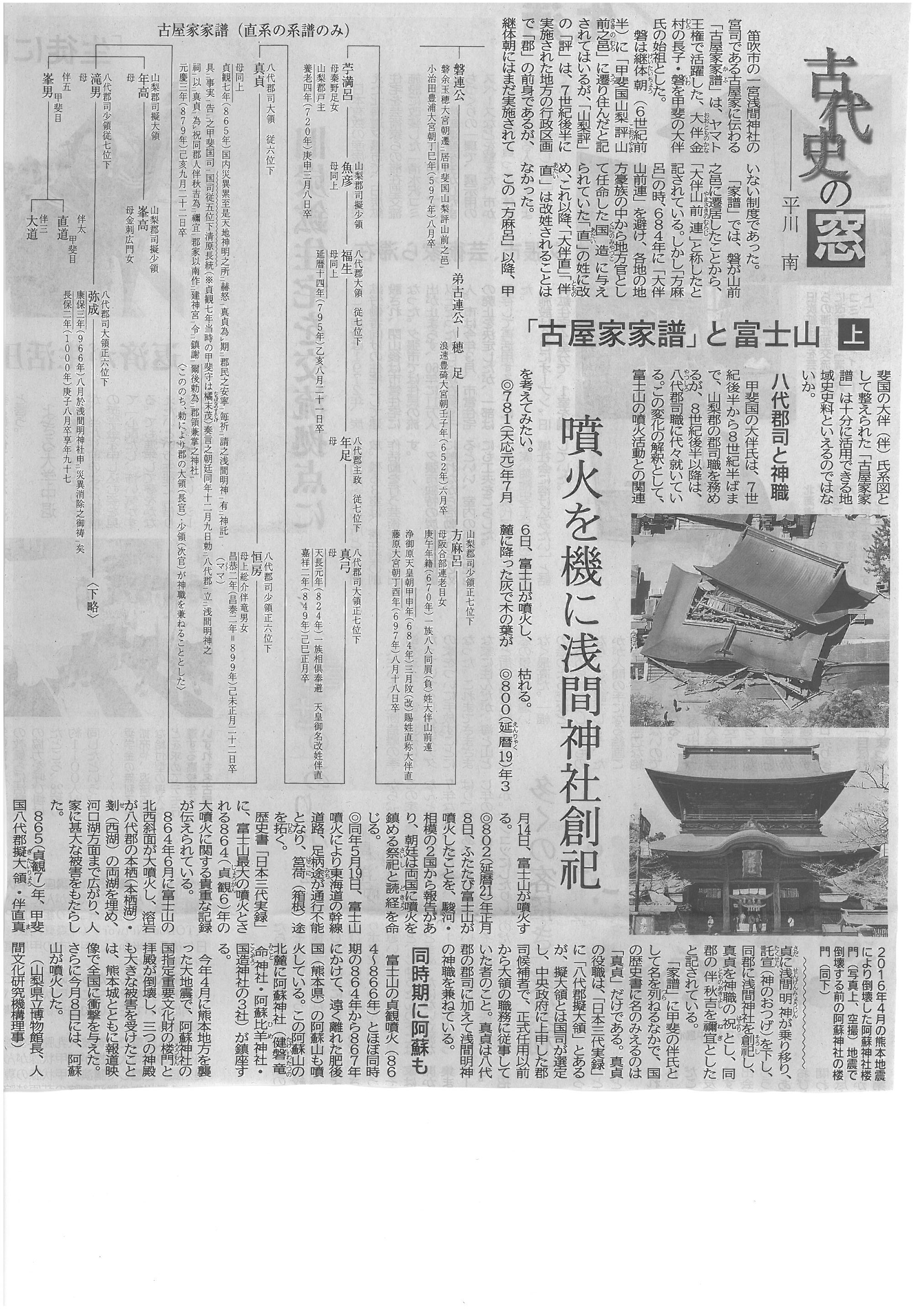 古代史の窓 「古屋家家譜」と富士山 上