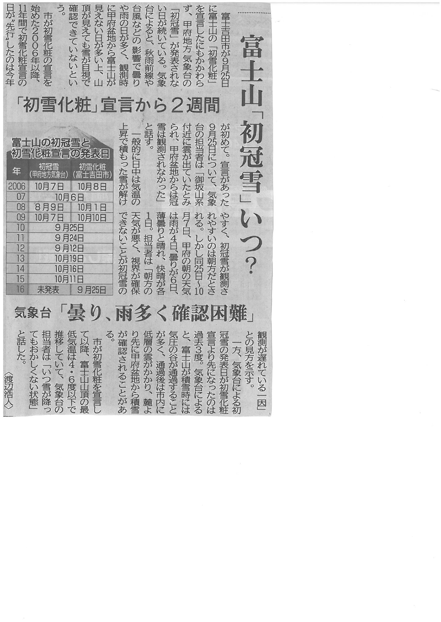 山梨日日新聞 平成28年10月8日