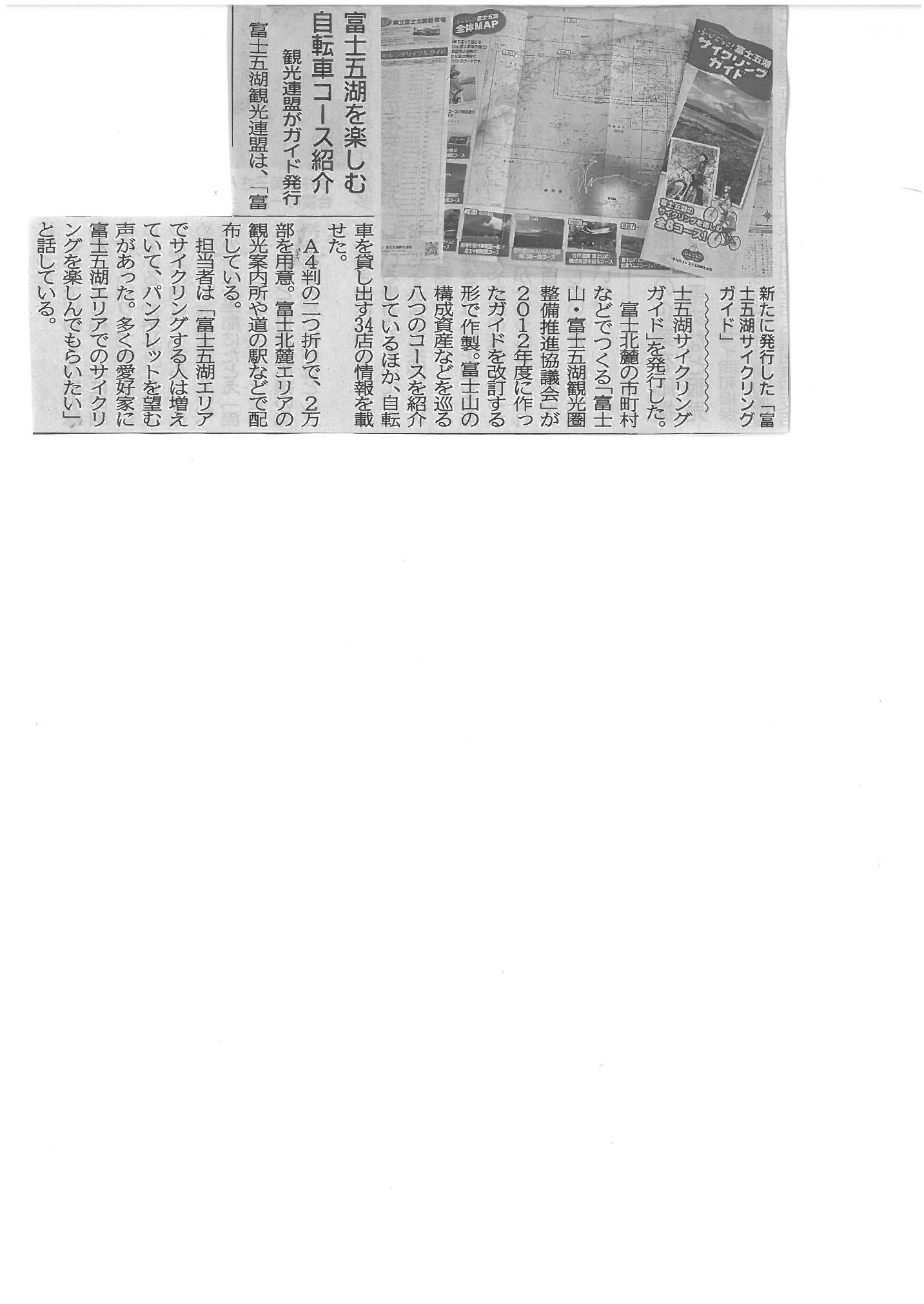富士五湖観光連盟がサイクリングガイド発行2016年11月17日 山梨日日新聞 平成28年11月17日 富士河口湖町、富士宮市が観光ガイド本 富士五湖観光連盟がサイクリングガイド発行 仙台ー静岡の小学校 ICT授業で交流学習