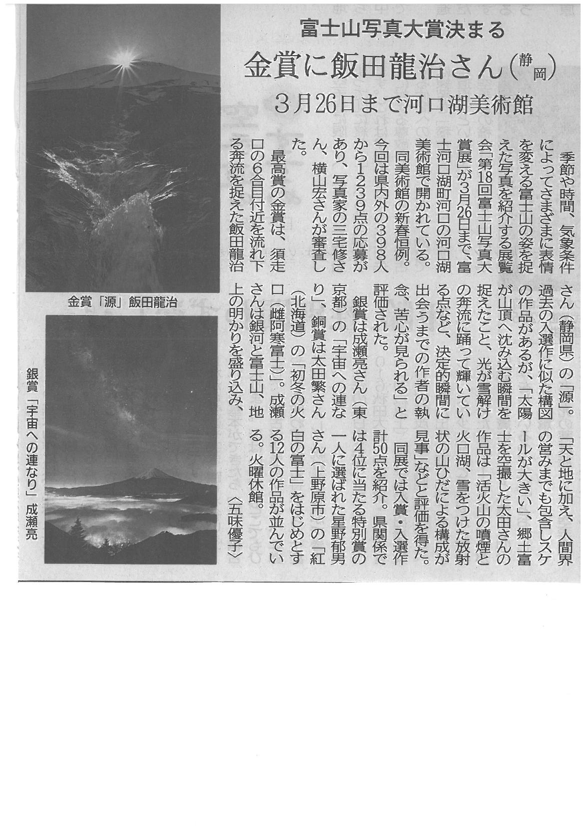 富士山写真大賞決まる 3月26日まで河口湖美術館2017年1月20日 山梨日日新聞 平成29年1月20日 「マネキ」で学生歓迎 富士講の歴史、文化紹介 富士山写真大賞決まる 3月26日まで河口湖美術館 富士山信仰が縁結ぶ