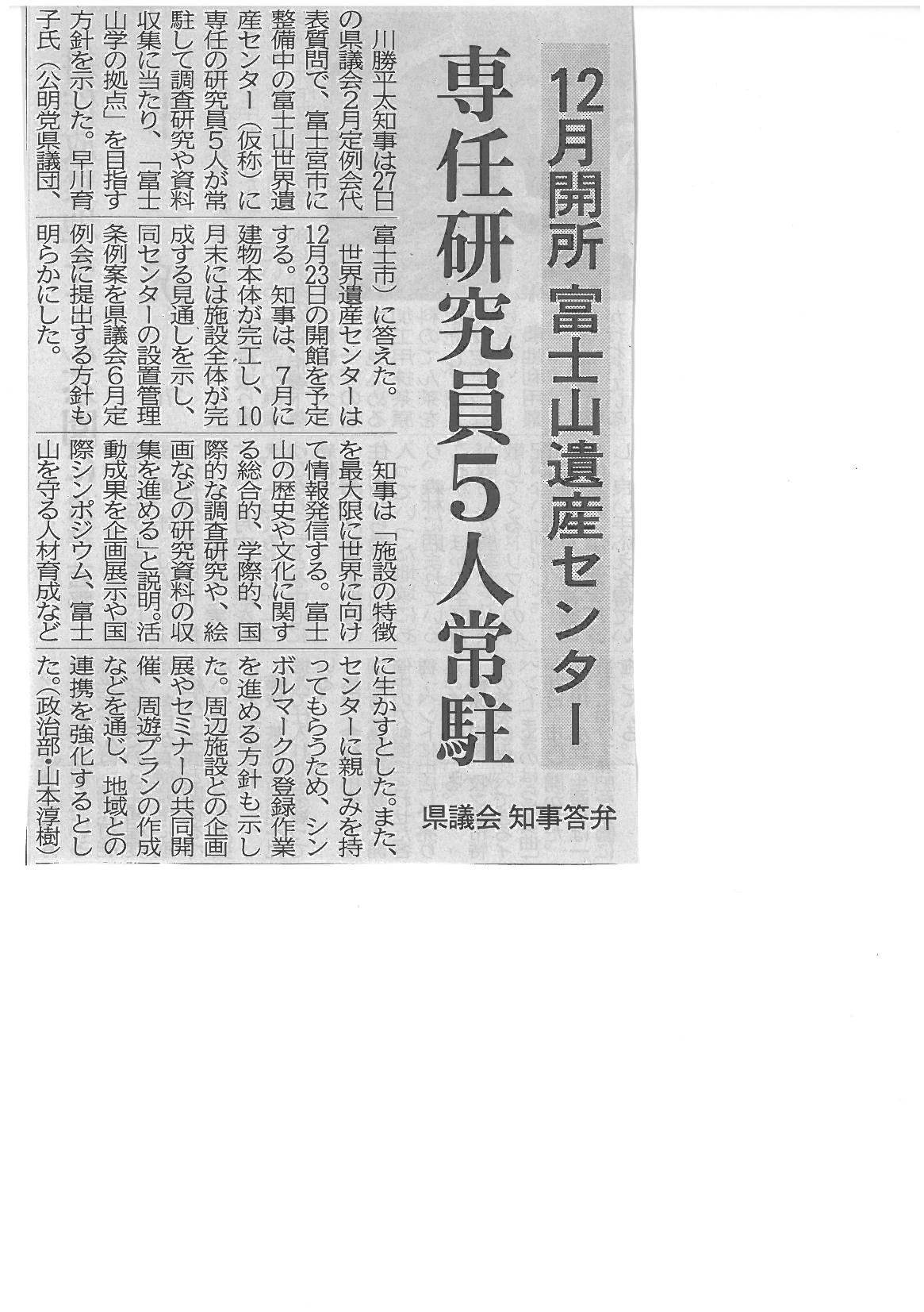 富士山世界遺産センター 選任研究員5人常駐2017年2月28日 静岡新聞 平成29年2月27日 夕刊 フジサン特急15年 「2代目」とパチリ 富士山世界遺産センター 選任研究員5人常駐 富士山御来光時の混雑解消など指摘