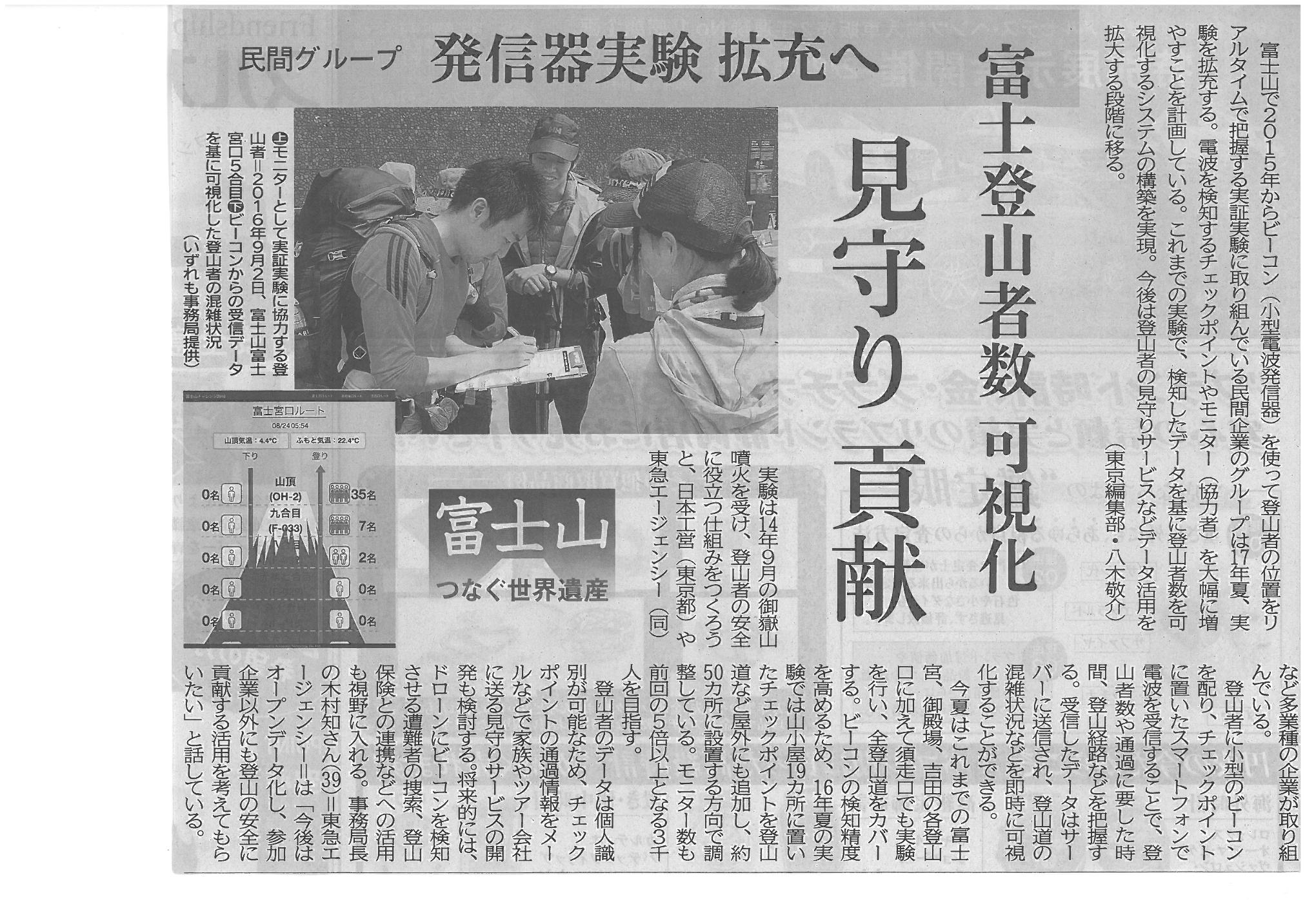 富士登山者数可視化 見守り貢献2017年2月28日 民間グループ発信器実験拡充へ 静岡新聞 平成29年2月23日(木) 折り紙、おはなし会 「富士山の日」満喫 富士登山者数可視化 見守り貢献 普遍的価値を世界へ 「富士山の日」フェスタ