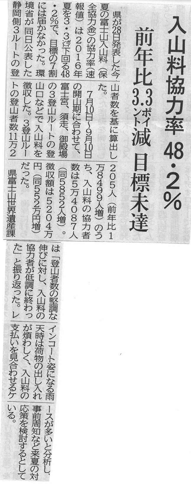 静岡側 入山料協力率48.2% 前年比3.3ポイント減2017年10月2日 静岡新聞 平成29年9月29日(金) 朝刊 本栖湖周辺のPR動画を公開 静岡側 入山料協力率48.2% 前年比3.3ポイント減 山梨側 入山料協力率56.9% 前年比7.6ポイント減