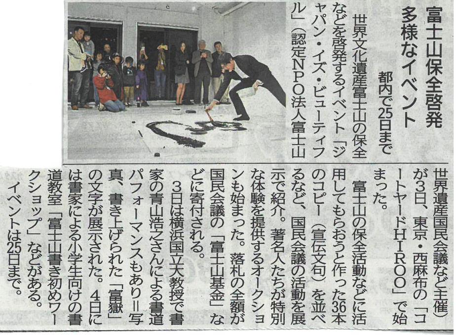 富士山保全啓発イベント「ジャパン・イズ・ビューティフル」都内で25日まで2017年11月6日 山梨日日新聞 平成29年11月4日(土) 三保松原保全ネット化 富士山保全啓発イベント「ジャパン・イズ・ビューティフル」都内で25日まで ふじさんミュージアム来場10万人