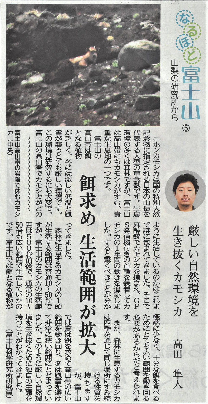 なるほど富士山 厳しい自然環境を生き抜くカモシカ2020年10月5日 10月2日 山梨日日新聞 なるほど富士山 意外と知らない富士山の植物の特徴 なるほど富士山 厳しい自然環境を生き抜くカモシカ なるほど富士山 噴火の被害を減らすために