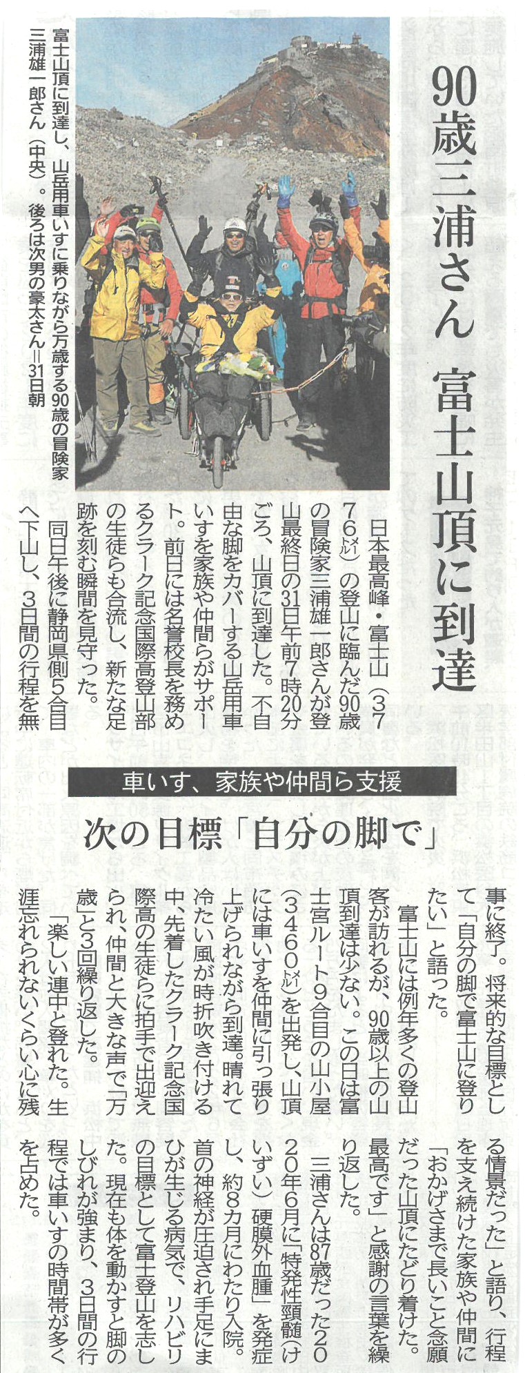 90歳三浦さん 富士山頂に到達