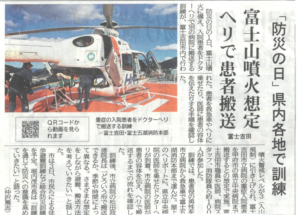 富士山噴火想定 ヘリで患者搬送