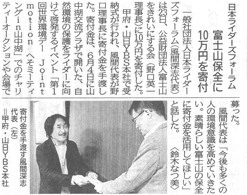 富士山保全に10万円を寄付