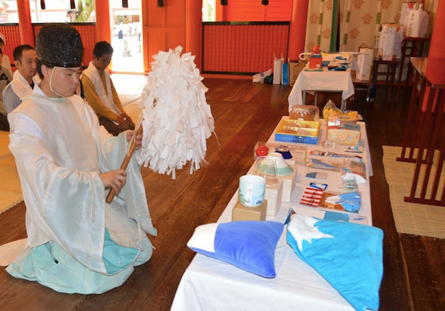 (様々なメーカーのプロダクト、スイーツ、書籍、Tシャツなど :奉納物リストは別添)を奉納いたしました。