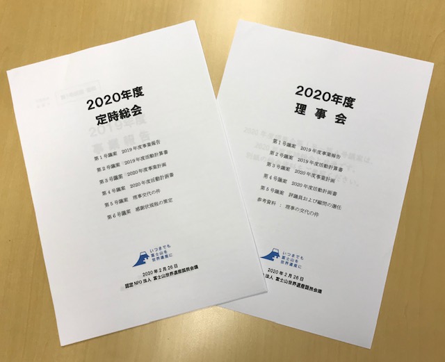 2月26日(水)、東京・港区のヴィラフォンテーヌ汐留コンファレンスセンターで、富士山会議の2020年度定時総会、理事会が開催されました。総会では、昨年度の事業報告、決算、本年度の事業計画、予算が、承認されました。