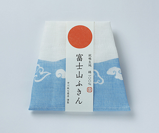 蚊帳生地のふきんは吸水性と速乾性に優れ、乾きやすく使い勝手が良く衛生的に使えます。富士山ふきんは、波形に描かれた生地を折りたたんで、富士山型にしています。綿100%、蚊帳生地5枚仕立て、30×40cm。