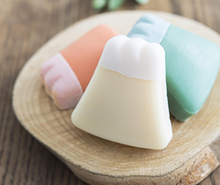 お土産としても大変人気のある「FUJIYAMA COOKIE」のかたちを表現した3種類の石けんは、その見た目はもちろん、使用感にもこだわりました。